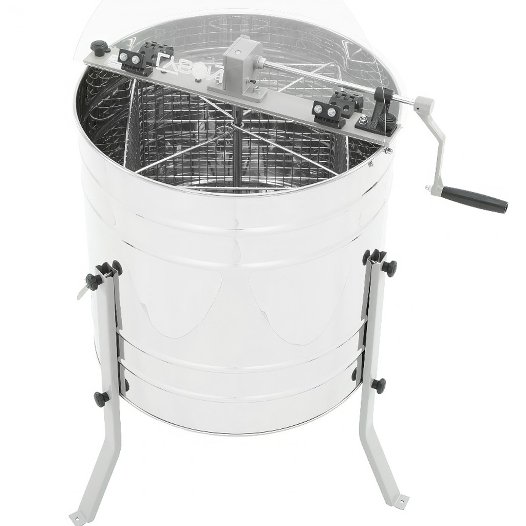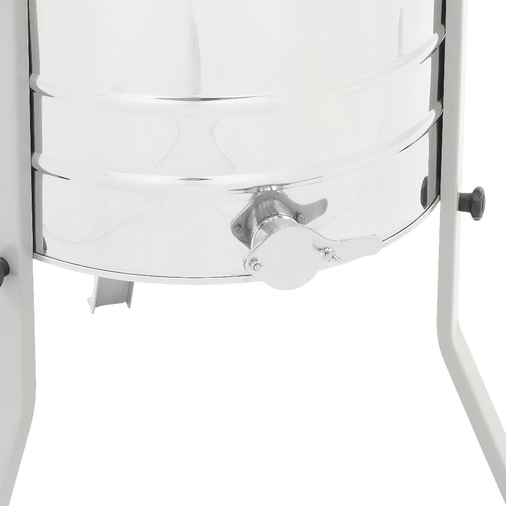 Den Handkurbelantrieb werden Sie überall dort schätzen, wo kein Strom zur Verfügung steht – am Bienenstand, im Bienenhaus und beim Wandern. Der Korb mit dichterem Drahtgeflecht (Maschenweite 20 × 20 mm) hilft, die Waben beim Schleudern vor Verformung zu schützen, und der konische Boden unterstützt den gleichmäßigen Honigabfluss zum Edelstahl-Ablasshahn auch bei dickflüssigeren Trachten. Die durchsichtige Abdeckung aus 3 mm Plexiglas erhöht die Sicherheit und ermöglicht es Ihnen gleichzeitig, den gesamten Schleudervorgang stets unter Kontrolle zu haben.