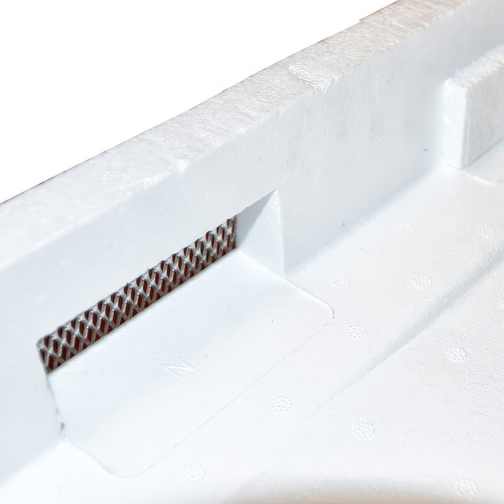 Hoher Deckel mit Belüftung für Polystyrol-Langstroth-Beuten. Praktischer Deckel aus gehärtetem Polystyrol, vorne mit zwei Belüftungsöffnungen, die mit einem Gitter abgedeckt sind. Die äußere Oberseite des Deckels hat eine leichte Neigung, damit das Wasser abfließt, außerdem sind die Kanten in der Mitte der Länge abgeschrägt, so dass an dieser Stelle ein Spanngurt (Ratsche) verwendet werden kann, mit dem die ganze Beute gegen Unwetter oder beim Transport gesichert werden kann. Unter dem Deckel ist ausreichend Platz für die Verwendung verschiedener Verdampfer oder kleiner Futterzargen (ca. 5 cm). Premiumqualität eines weltweiten Herstellers, der Waren für die größten Weltfirmen liefert (z.B. unter der Marke Imgut für H. Holtermann in Deutschland, unter der Marke Lega für Italien usw.).