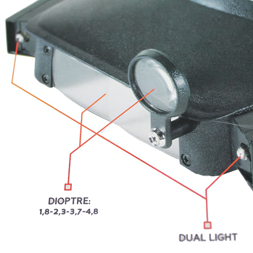 | Lupentyp | Kopfbinokularlupe mit integrierter Beleuchtung |