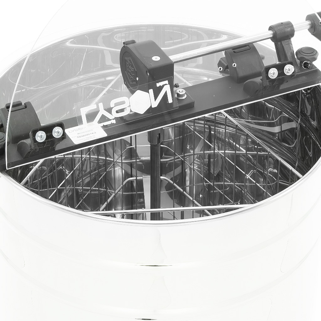 Kessel und Korb sind aus säurebeständigem Edelstahl 0H18N9 gefertigt, der für den Lebensmittelkontakt geeignet ist, sich leicht reinigen lässt und langfristig korrosionsbeständig ist. Der Korb aus stabilen Edelstahlstäben bietet den Rähmchen eine stabile Stütze und hilft, das Wabenwerk beim Schleudern vor Beschädigungen zu schützen. Der Kessel mit einem Durchmesser von 50 cm ist oben mit einem durchsichtigen Deckel aus Plexiglas abgedeckt, sodass Sie den Schleudervorgang stets unter Kontrolle haben und gleichzeitig sicher arbeiten, ohne Kontakt mit dem rotierenden Korb zu riskieren.