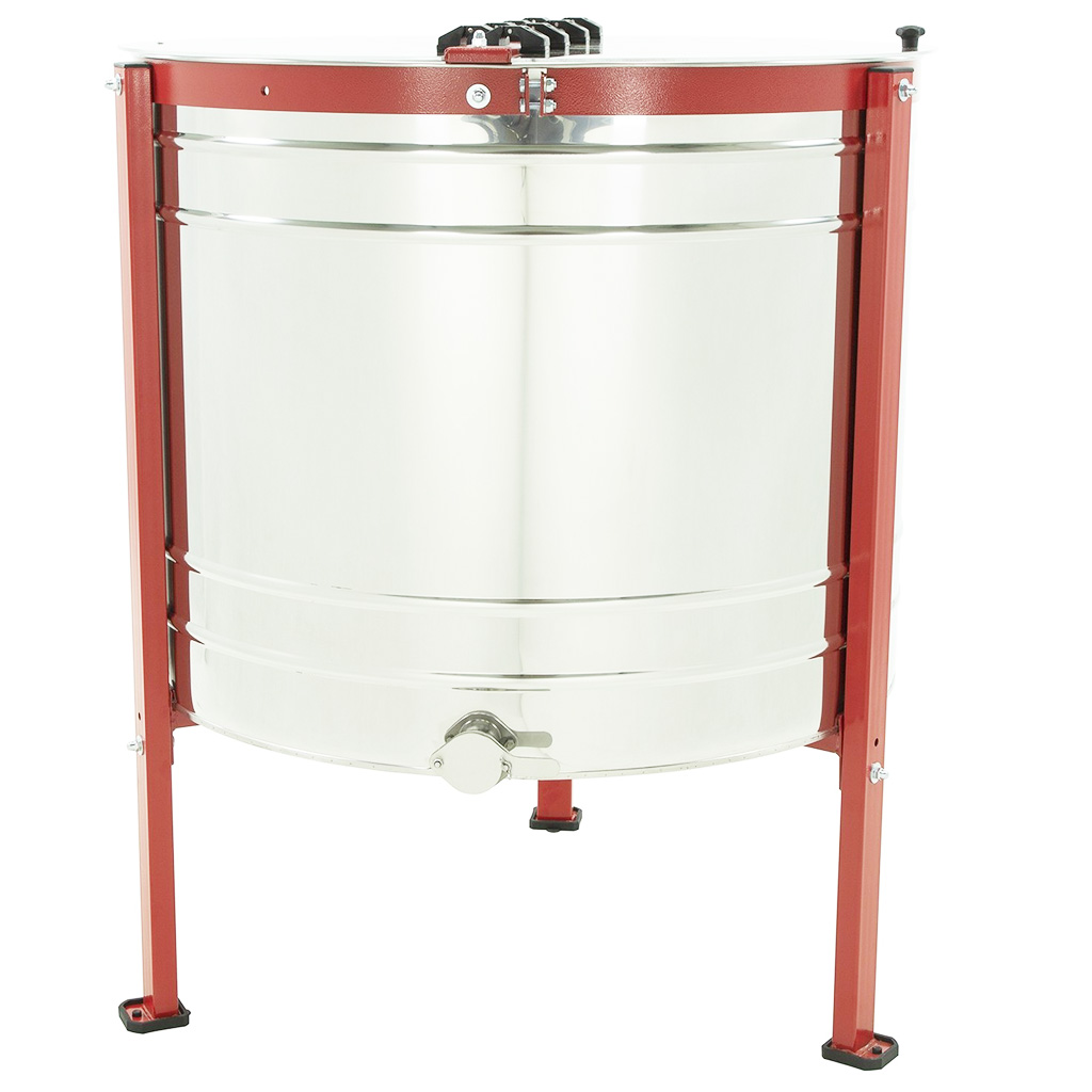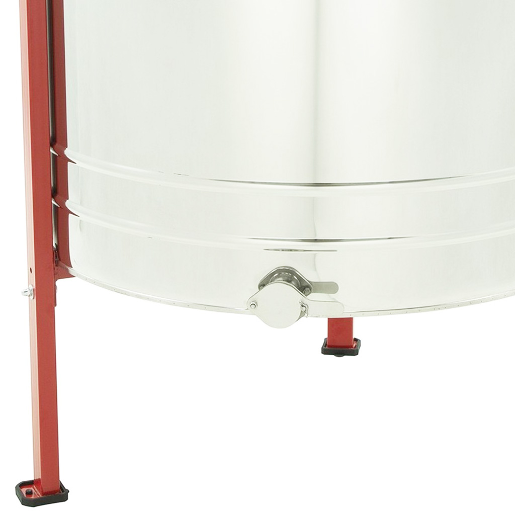 Alle Teile, die mit dem Honig in Kontakt kommen, sind mit Schwerpunkt auf Hygiene und Beständigkeit gefertigt. Die Trommel mit einem Durchmesser von ca. 90 cm sowie der Innenkorb bestehen aus säurebeständigem Edelstahl (0H18N9). Das Edelstahlblech mit einer Stärke von 0,6 mm ist für höhere Festigkeit und Stabilität im Betrieb verstärkt. Die Kraftübertragung vom unteren Motor gewährleisten robuste Lager in der oberen und unteren Achse, die zu einem ruhigen Lauf beitragen. Den Honig können Sie bequem über den unteren Edelstahl-Ablasshahn in der Größe 6/4" abfüllen.