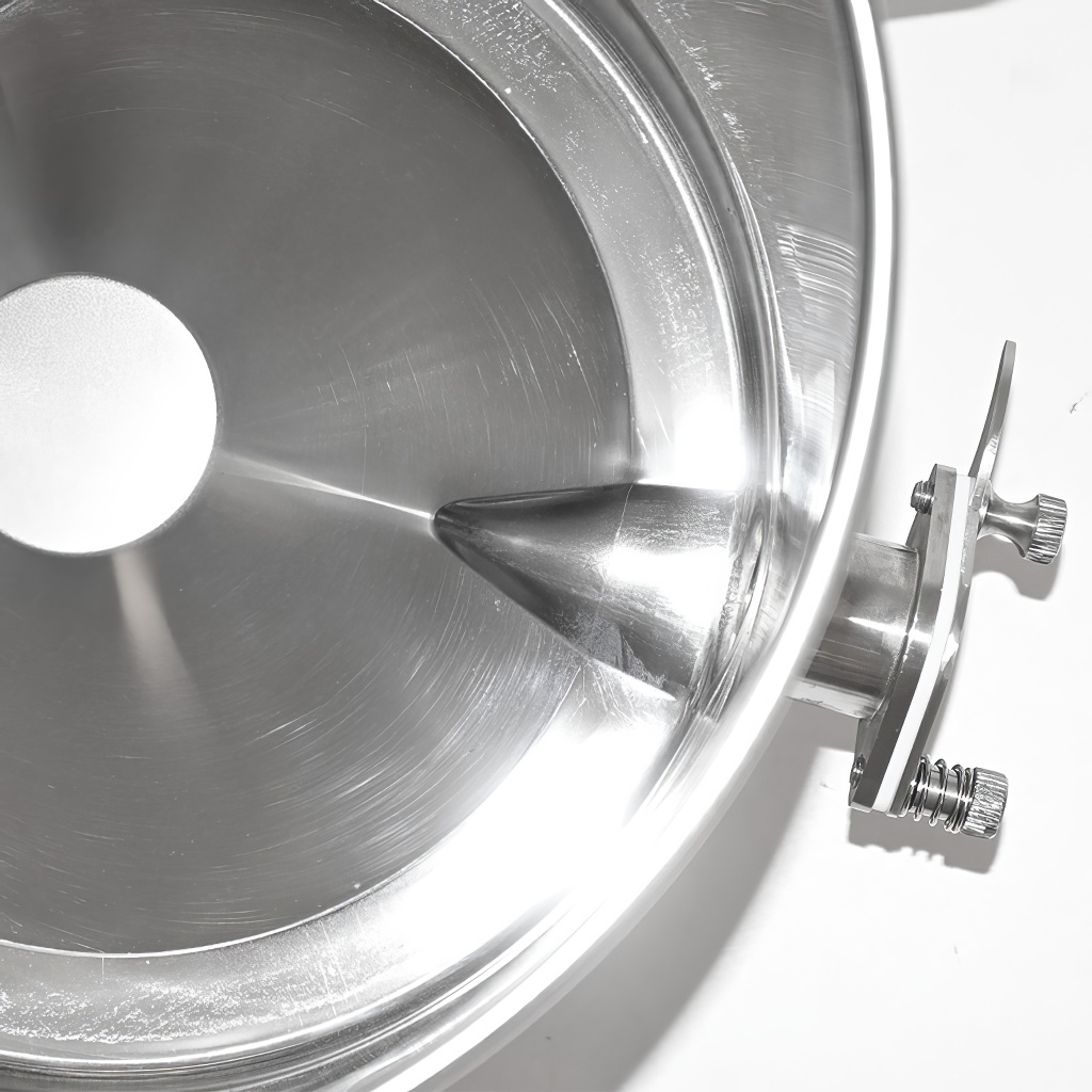 Mellarius MaxiLine ist modular konzipiert, um sich leicht an Ihren Betrieb anpassen zu lassen. Für bequemes Abfüllen in Gläser empfehlen wir einen Edelstahlständer, der ausreichend Platz unter dem Hahn auch für höhere Behälter schafft. Für eine höhere Filtrationsebene können Edelstahlsiebe in verschiedenen Feinheitsgraden (grob, fein, ultrafein) nachgekauft und nach Bedarf gestapelt werden. Wenn Sie das Abfüllen noch präziser und komfortabler gestalten möchten, kann am Edelstahlhahn ein Ablassventil angebracht werden.