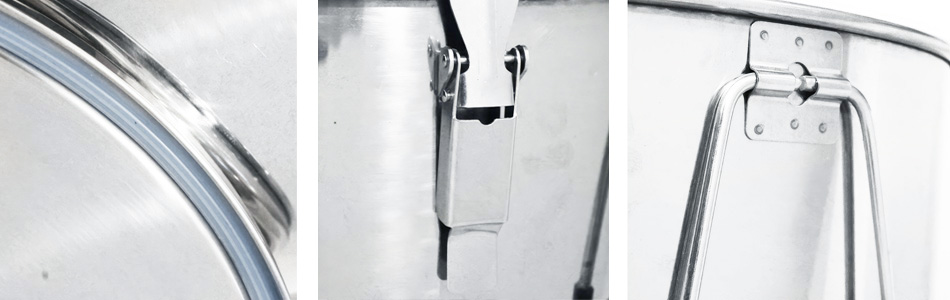 Im Lieferumfang finden Sie auch ein konisches Edelstahlsieb für die Grundfiltration. Der Dichtungsdeckel mit Silikondichtung und Sicherheitshaken schützt den Honig vor Feuchtigkeit und Verunreinigungen aus der Umgebung. Der Verschluss hält auch bei Handhabung fest, wodurch das Kontaminationsrisiko während der Arbeit im Schleuderraum erheblich reduziert wird.