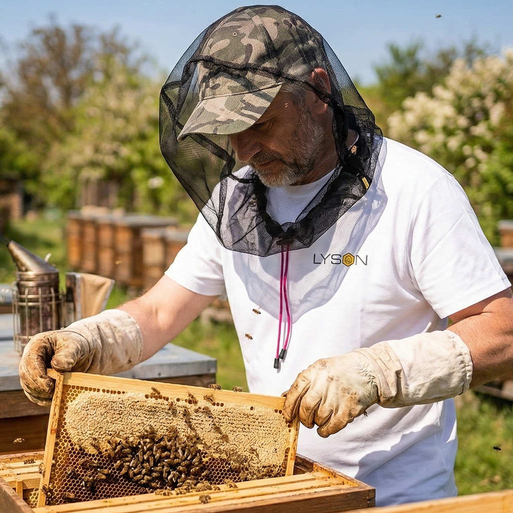 Das Netz setzen Sie einfach auf die meisten Imker- sowie gewöhnliche Hüte mit breiter Krempe auf. Gerade die Krempe hilft, das Netzgewebe in sicherer Entfernung vom Gesicht zu halten, auch beim Vorbeugen über die Rähmchen. Lysoň ist unter Imkern eine bewährte Marke und ihre Produkte sind für gute Haltbarkeit bekannt. Das Material des Netzes widersteht normaler Abnutzung und dem Hängenbleiben an Zargenkanten, sodass es Ihnen bei der täglichen Arbeit am Bienenvolk dienen wird. Das Ergebnis ist eine sicherere und zugleich angenehmere Durchsicht und dazu ohne unnötigen Stress.