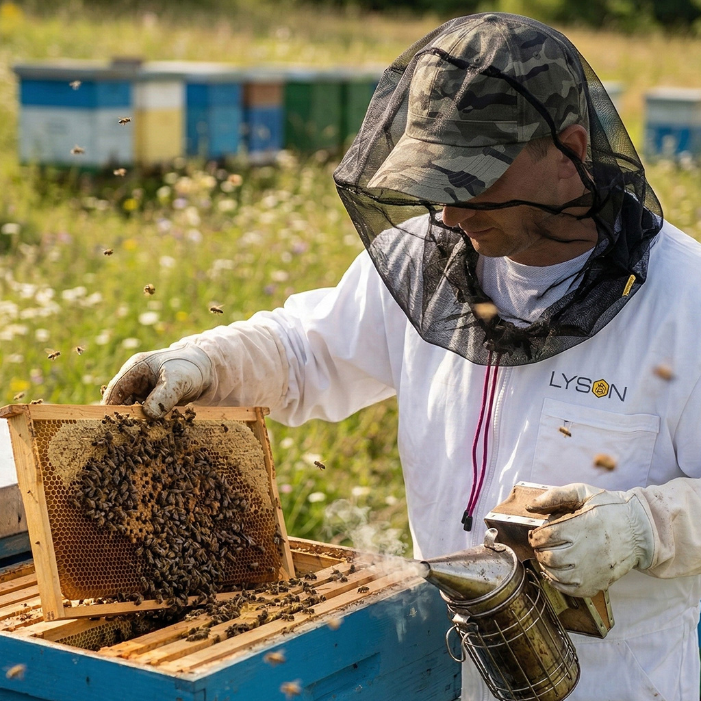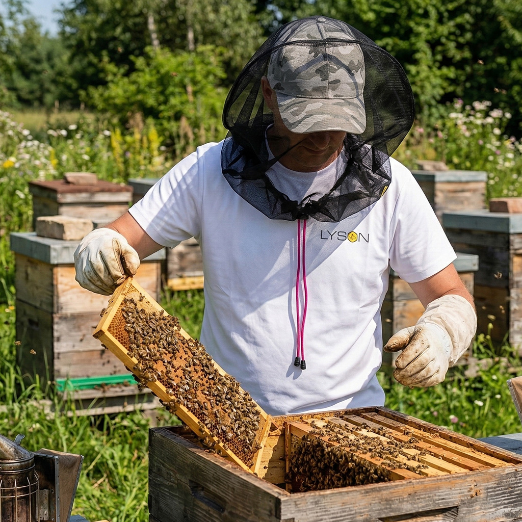 Ohne hochwertige Schutzkleidung entgeht auch ein erfahrener Imker den Stichen am Bienenstand nicht. Dieser Schleier der Marke Lysoň gehört zur Grundausstattung für sicheres Arbeiten an den Beuten – ob Sie die Frühjahrsrevision durchführen, Zargen erweitern, Honig schleudern oder nur schnell die Volksstärke kontrollieren. Er schützt zuverlässig Gesicht und Hals und gibt Ihnen die Ruhe, dank der Sie sich auf die Arbeit mit den Bienen konzentrieren können, nicht auf das Abwehren der Wächterbienen.