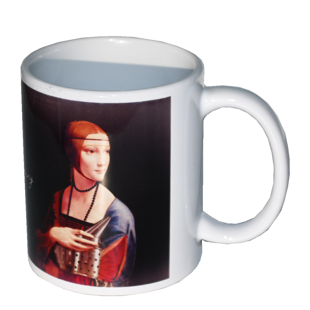 Tasse aus der Kollektion Art of beekeeping mit der Darstellung einer Dame mit Smoker nach dem Motiv des berühmten Gemäldes "Dame mit Hermelin" von Leonardo da Vinci. Größe Ø ca. 8 cm, Höhe ca. 9,5 cm. Spülmaschinen- und mikrowellengeeignet.