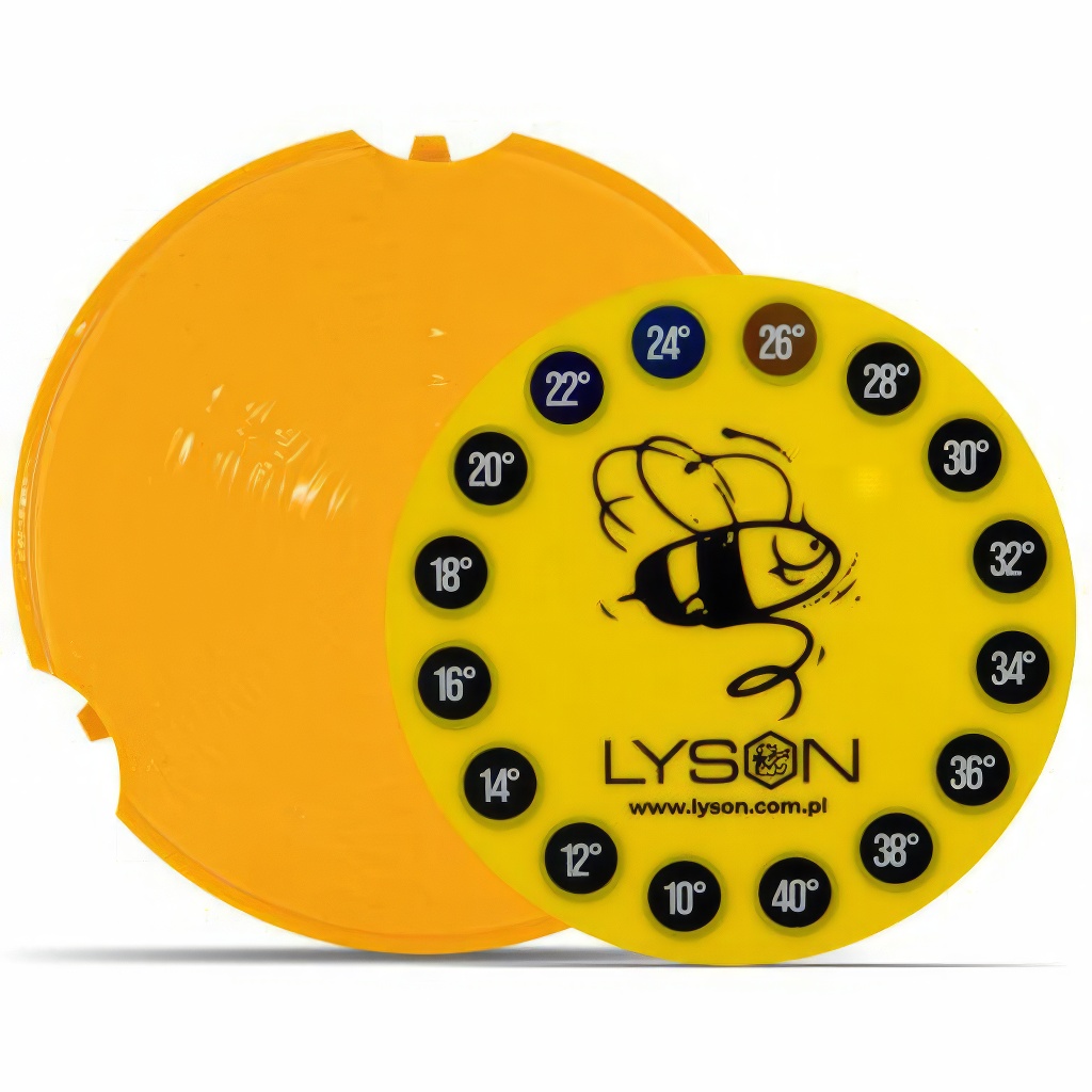 Jeder Imker weiß, dass die richtige Temperatur im Inneren der Beute die Garantie für ein starkes und gesundes Bienenvolk ist. Das runde Flüssigkristall-Thermometer, das in den Deckel eingebaut wird, gewährleistet eine effektive Messung zu geringen Kosten. Es genügt, den Deckel anzuheben, auf das Thermometer zu schauen und schon können Sie zu den richtigen Schlussfolgerungen gelangen. Anhand der Temperatur lässt sich feststellen, was gerade in der Beute vor sich geht.