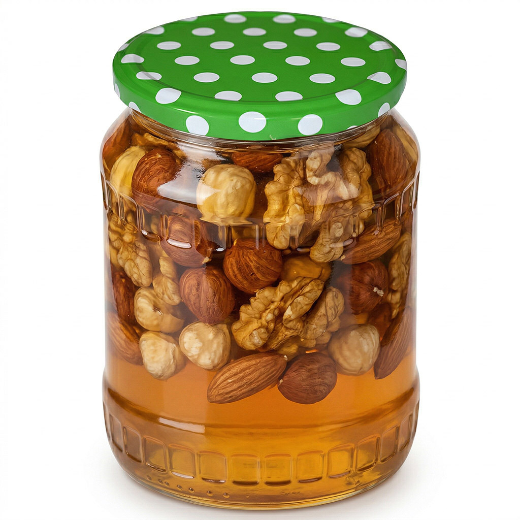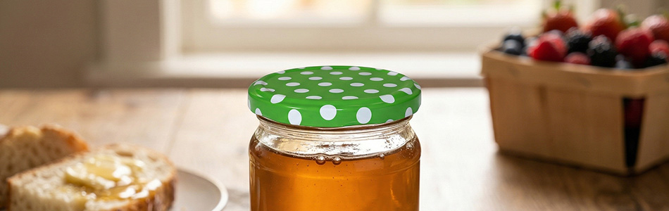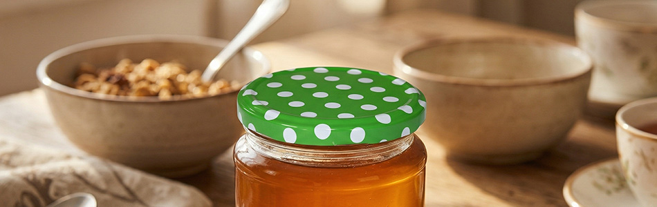 Die Deckel sind mit Schwerpunkt auf zuverlässigem Verschluss konzipiert, damit der Inhalt langfristig geschützt und in gutem Zustand bleibt. Neben Honig können Sie sie auch beim Einkochen und Konservieren verwenden, beispielsweise für Marmeladen, Kompotte, Sirupe oder Chutneys. Sie eignen sich auch für trockene Zutaten wie Nüsse, Hülsenfrüchte, getrocknete Kräuter oder Gewürze, die trocken und sicher verschlossen aufbewahrt werden müssen.