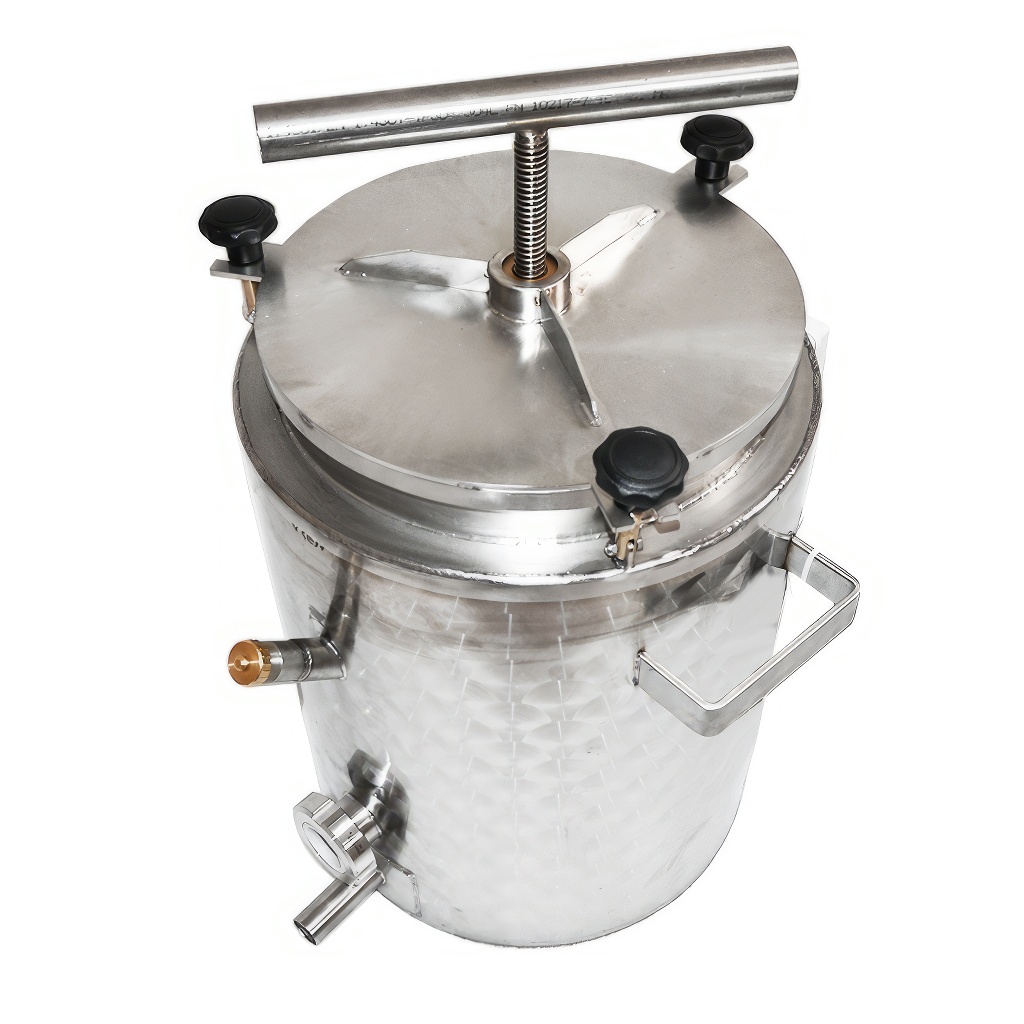 Der komplett aus Edelstahl gefertigte Wachsschmelzer für Bienenwachs ist ein doppelwandiger Behälter mit eingesetztem Korb und Presse. Material Edelstahl 1.4301 mit einer Wandstärke von 2 bis 5 mm, das Fassungsvermögen des Wachsschmelzers beträgt 35 Liter. Außenmaße 400 x 500 mm (Durchmesser x Höhe).