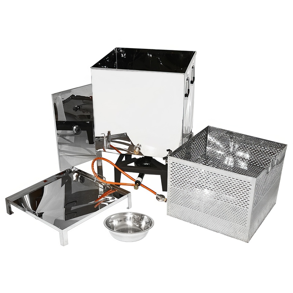 Erleichtern Sie sich die Arbeit im Bienenstand mit dem großvolumigen Wachsschmelzer Mellarius. Das Gerät ist für eine der zeitaufwändigsten Tätigkeiten in der Imkerei konzipiert – das Ausschmelzen von Wachs und gleichzeitige Reinigen der Rähmchen. Dank durchdachter Konstruktion und mitgeliefertem Gasbrenner erhalten Sie eine schnelle, zuverlässige und standortunabhängige Lösung, die Sie bei der Verarbeitung von Altwaben sowie bei größeren Materialmengen in der Saison schätzen werden.